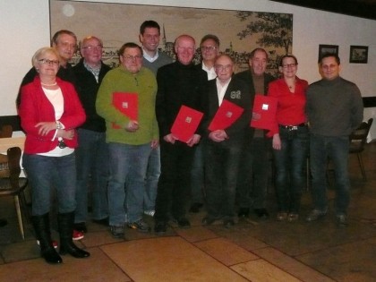 Höhepunkt des Abends war jedoch die Ehrung der langjährigen Mitglieder durch Roman Schnalzger. Geehrt wurden für 45 Jahre Vera Schweizer, für 40 Jahre Günter Duschek, Fridolin Lohner, Viktor Merenda, Xaver Öfele, Heinrich Wagenhuber und Franz Wenger und für 30 Jahre Ulrich Steixner. Alle anderen Jubilare konnten entschuldigt nicht an der Ehrung teilnehmen.