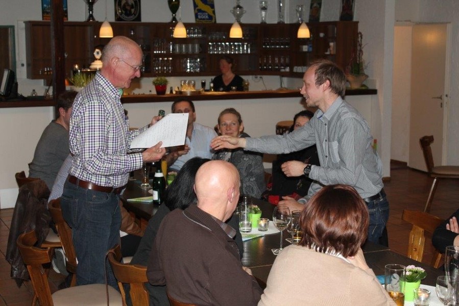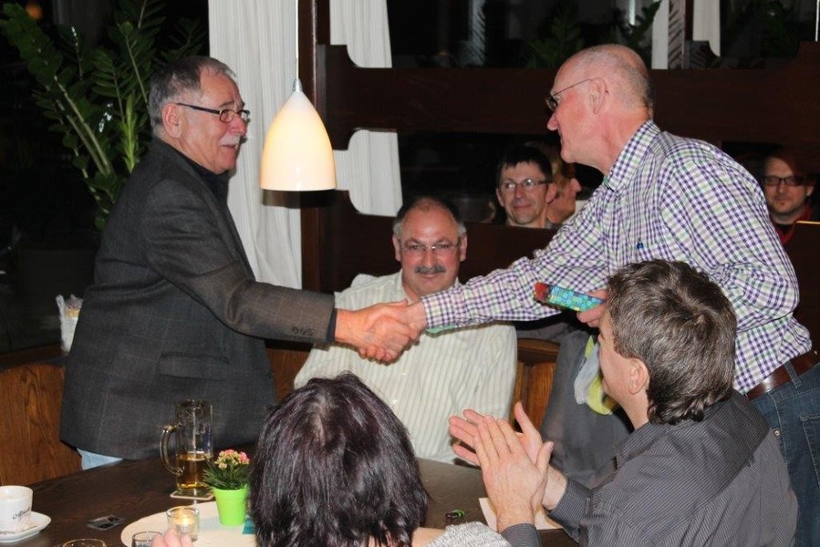 Mit fränkischem Sauerbraten, schwäbischen Käsespätzle oder einem leckeren Salat wurden die Gäste vom Team der Stadiongaststätte kulinarisch verwöhnt. Viktor Merenda, 2. Bürgermeister der Stadt Gundelfingen, ging in seiner Wahlanalyse zurück bis ins Jahr 1984. Einen tollen Erfolg konnte man bei den vergangenen Wahlen erzielen, nicht nur im Landkreis Dillingen, sondern vor allem bei den Stadtratswahlen in Gundelfingen. Ein Mandat konnte man hier dazu gewinnen und ist jetzt wieder acht Stadträten im Gremium des Stadtrates vertreten. Manchmal brauche man einen langen Atem, betonte Merenda und hob dabei Roman Schnalzger hervor, dem jetzt bei seiner vierten Kandidatur der Sprung in den Stadtrat gelang. Bedanken konnte sich Merenda auch bei den unzähligen Helfern, die sich in den letzten Monaten für die Gundelfinger Sozialdemokraten eingesetzt haben. Toni Wagner, Benjamin Geiger, Siegfried Wölz, Michael Stark, Roman Schnalzger, Uwe und Jürgen Hartshauser wurden stellvertretend für die anderen Helfer mit einem kleinen Präsent belohnt.