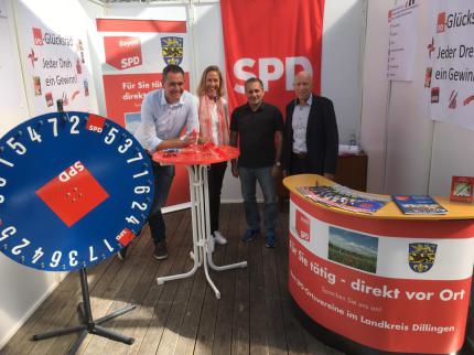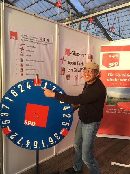 Auch in diesem Jahr fand die GET bei herrlichstem Endsommerwetter auf dem Gelände des Gartenlandes Wohlhüter statt. Auch der Gundelfinger SPD-Ortsverein war zusammen mit dem SPD-UB Dillingen vertreten. Hier konnten die Genossen gute und informative Gespräche mit den Besuchern der GET führen. Ein besonderer Anziehungspunkt am Stand der SPD war das Glücksrad, wo nicht nur die Kleinen, sondern auch die Großen ihr Glück unter Beweis stellen konnten.