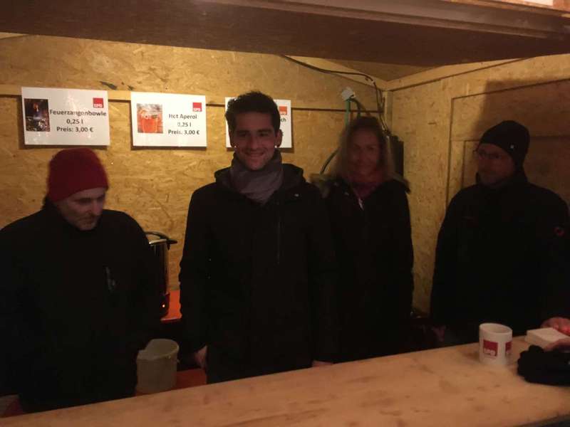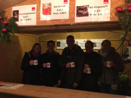 Nachdem der Gundelfinger Weihnachtsmarkt in den letzten beiden Jahren nicht gerade vom Wetter begünstigt war, fand der Gundelfinger Weihnachtsmarkt auf der Bleiche dieses Mal bei herrlichem Adventswetter statt. Einzig ein wenig Schnee hat den Besuchern, wie auch den Mitgliedern der Gundelfinger SPD, zur vollsten vorweihnachtliche Stimmung gefehlt. Angespornt vom stimmungsvollen Weihnachtsmarkt und den gut gelaunten Besuchern legten sich die Genossen dieses Mal wieder voll ins Zeug. Von Freitag bis Sonntag verwöhnte die SPD aus Gundelfingen ihre Gäste mit Hot Aperol, Feuerzangenbowle und Kinderpunsch. Wie auch im letzten Jahr hat die neue SPD-Vorsitzende Birgit Spengler wieder alles Bestens organisiert, dieses Mal auch das Wetter, wie manch Einer spaßeshalber anmerkte.
