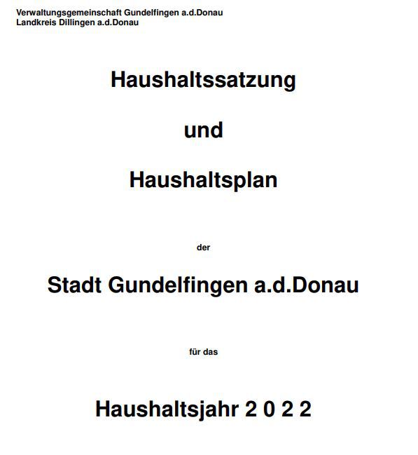 Kennzahlen Haushalt der Stadt Gundelfingen 2022: