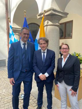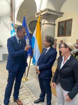 Über 250 Gäste verfolgten die Zeremonie in der Dillinger Studienkirche. Mit dabei waren auch die beiden Gundelfinger SPD-Kreisräte Vera Schweizer und Jürgen Hartshauser. Beide hatten die Gelegenheit bei dem anschließenden Empfang im Arkadenhof der Akademie für Lehrerfortbildung das Gespräch mit dem sehr sympathischen und aufgeschlossenen Preisträger zu suchen.