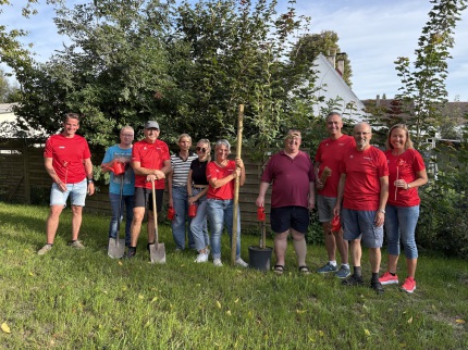 Die Aufgabe wurde fristgerecht erfüllt: Auf einer vom Kinderheim Gundelfingen bereitgestellten Fläche wurde eine schwäbische Weinweichsel gesetzt.