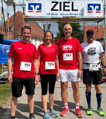 Die Ortsvorsitzende Birgit Spengler lief zusammen mit dem Gundelfinger Stadtrat Max Ruchti, dem Höchstädter Stadtrat Rainer Wanek sowie unserem Bundestagsabgeordneten Christoph Schmid die 10 km. lange Strecke.